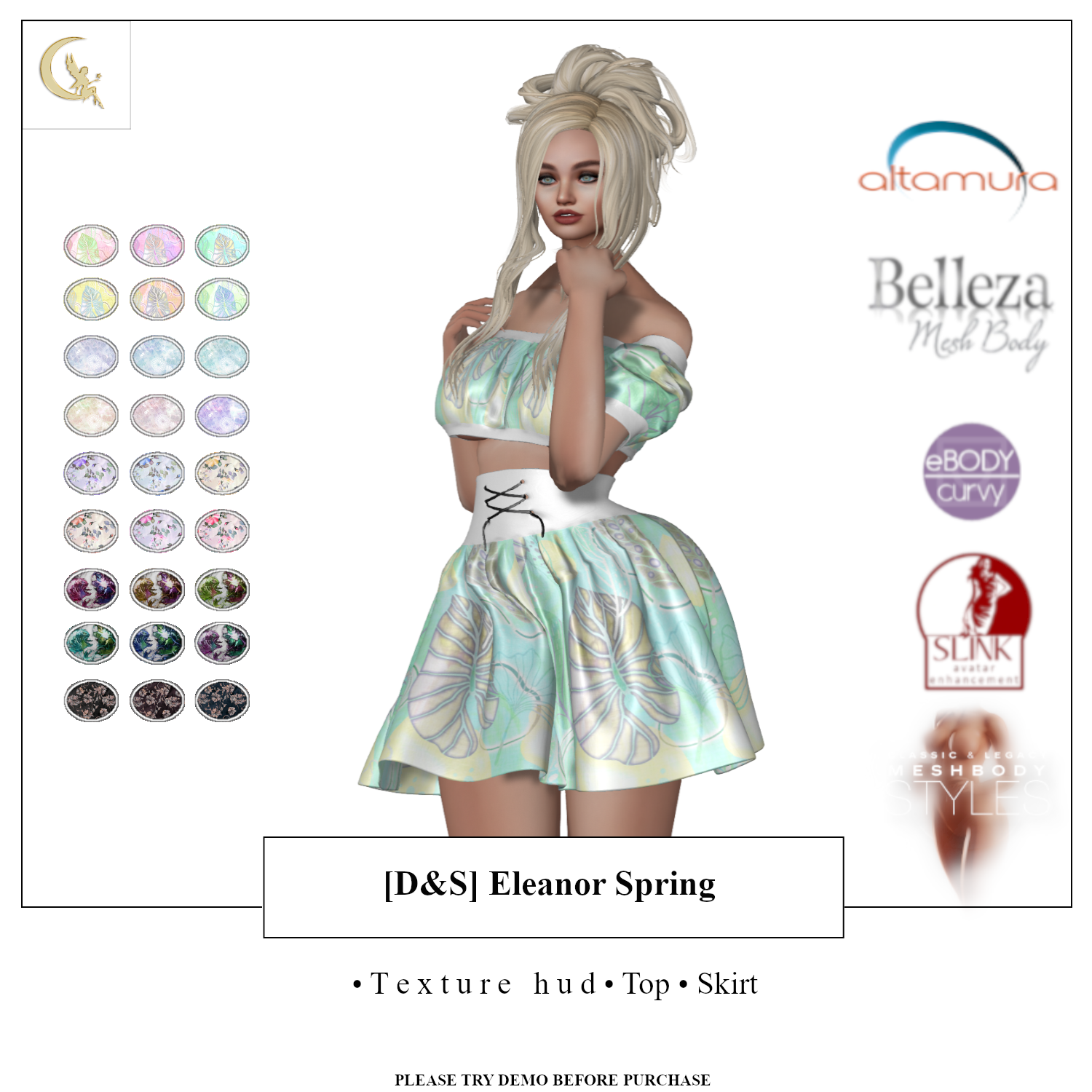 This skirt and top was made specifically for Altamura, Belleza (Freya, Isis, Venus) Belleza GenX ( Classic, Curvy), Ebody (Curvy), Kupra( Bimbo, Low, Original), Legacy (Legacy Perky),Legacy (Classic also known as TMP) Maitreya (Lara, Petite), Maitreya (LaraX, PetiteX), SLink (Physique, Hourglass), Reborn, Signature (Alice)
